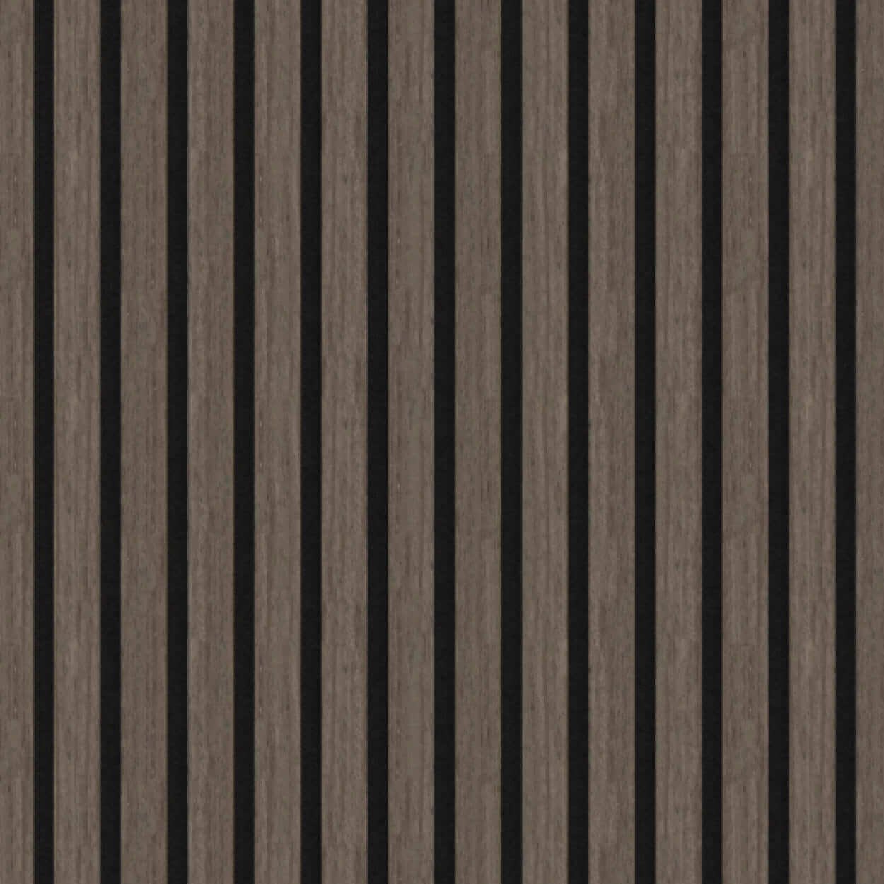 Un panel acústico de pared elegante y moderno, con acabado de chapa de madera en tres caras en tono nogal.